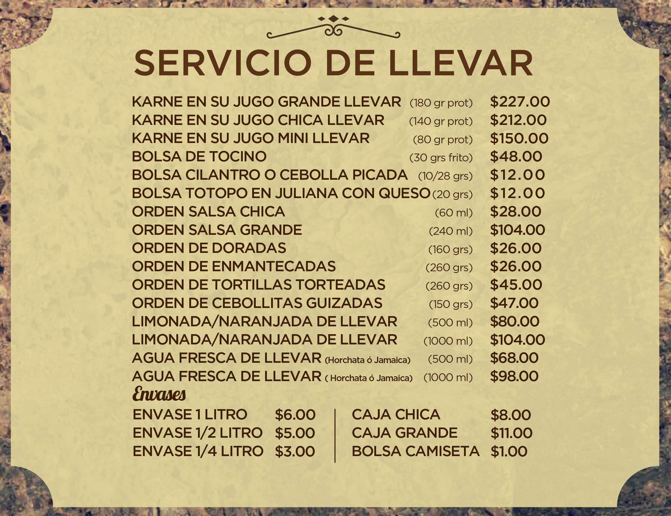 Aquí puedes consultar nuestros menús para comer aquí y para llevar.